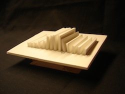 Aesthetics in Interaction2008 Autumn (1 week) 20年11月Briefing Exploring the Aesthetic value in a piece of Music (in this case Debussy's "Les Sons, Les Parfums, Les Couleurs se Repondent") and translating this into a Physical Interaction between Human and Product. Design Together with a student from Tsukuba University and a student from the TU/e, we looked into the continuous movement and emotion in the music, and translated this into a 2-dimensional wave which can be moved from side to side, with mere gestures of the hand without actually touching it. We experienced the music as going back and forth, as if hesitating on making a decision, and the feel of the music felt as if the mind and the physical world are not entirely in touch with eachother, nearly dream-like. Team Miho Aoki (青木 美歩), Gerrit Willem Vos